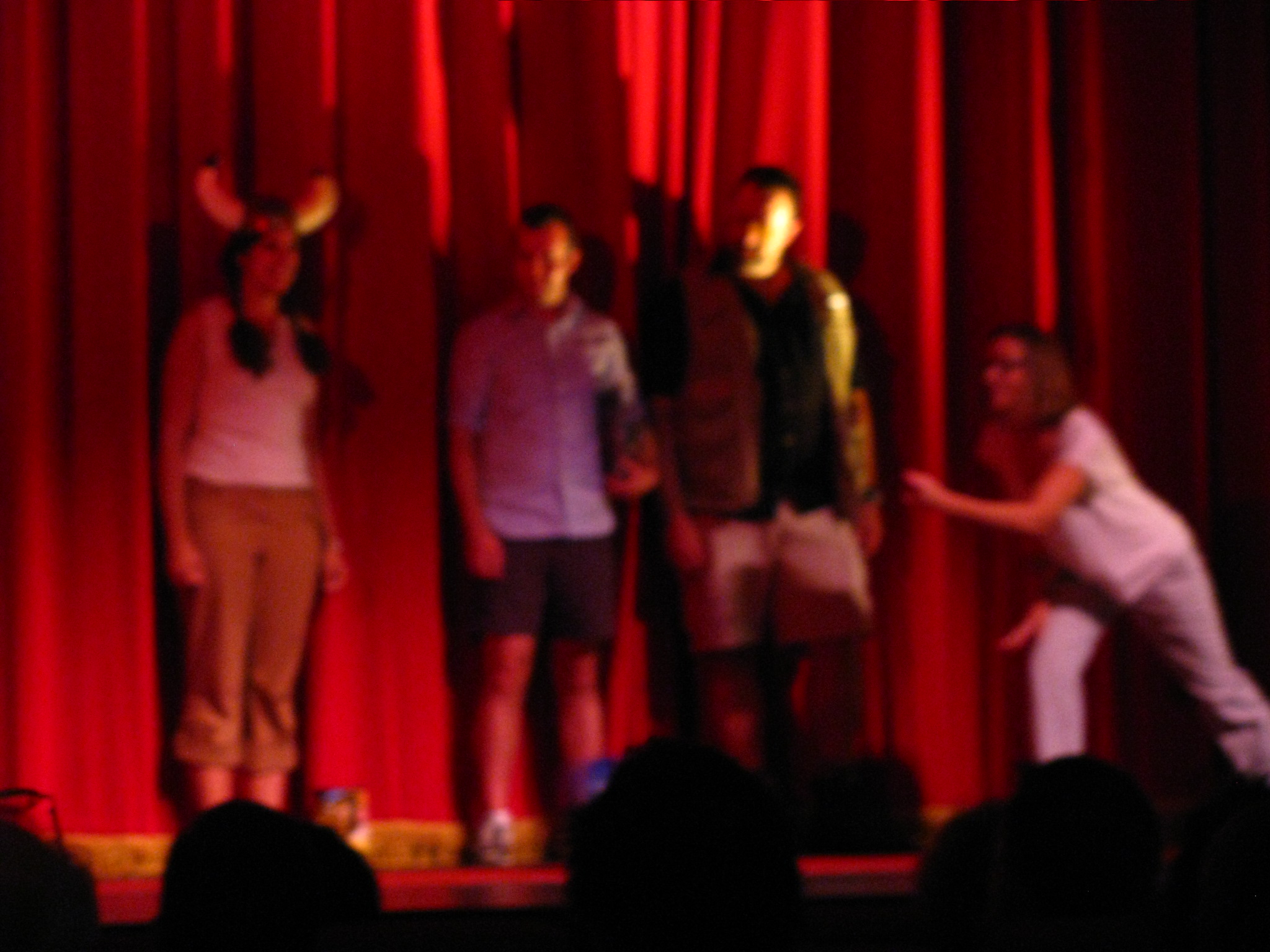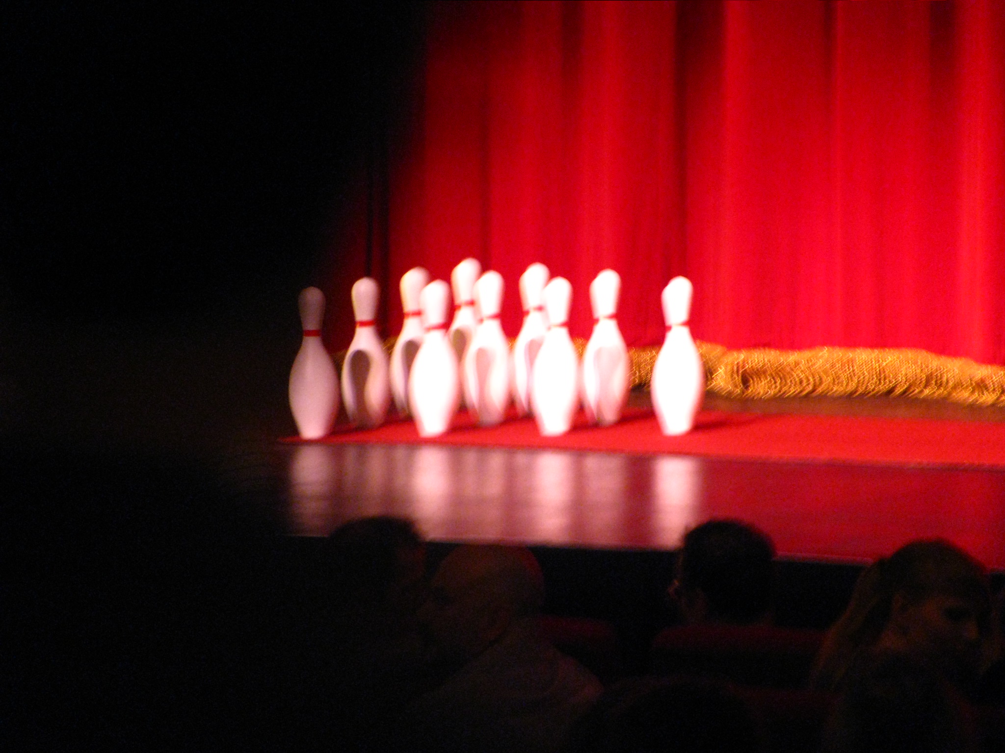 Inside, the theater filled up quick, as people in robes ran towards the center and front seats. We needed to be close to the action-the bowling action. Pins were already lined up onstage. After about half an hour of beer lines and concession stand mayhem stopped holding up the shindig. Staff decided to get the party started.
