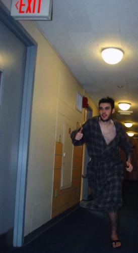 If there’s no smoke, grab some clothes—“When you hear the alarm, you have to respond as if we have a legitimate fire emergency,” says Mr. Zamojski. However, we all know that it gets a little cold in Boston. “If it’s snowing out or very cold out, it would be prudent, since you just stepped out of the shower, to throw on some warm clothes and then get outside as quickly as you can.”
