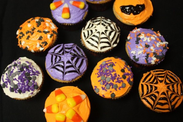 Get creative here; the only rule is to wait to decorate the cupcakes once they are completely cool. You can use food coloring to make different colors of frosting, buy Halloween sprinkles, Halloween candy, spider rings, anything you want.
