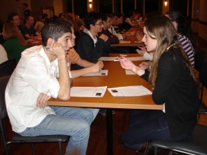 Daters search for matches during their two minute chats at Hillel’s Speed Dating | Photo by Rachel Stine