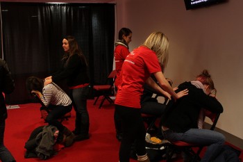 “People get freaked out when exams come. Yesterday the study room in Stuvi 2 was packed at 4:30 in the morning,” Ellen Cohn, a Junior in the School of Communications and member of the SAA Communications Team, told the Quad on Thursday night. She was giving an attendee a massage–one of the many activities featured. There was also free yoga and Pilates, food, and board games.
