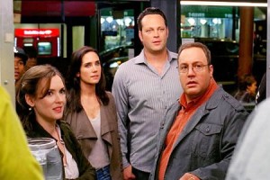 It starts out pleasant enough.  Nick (Kevin James), the hoodwinked husband, and Ronny (Vince Vaughn) are best friends and business partners trying to break big in the automotive industry. They get their chance when Dodge asks them to come up with a green way to power classic muscle cars. To celebrate the new venture, Nick and Ronny hit the town with their ladyloves, Nick’s wife Geneva (Winona Ryder) and Ronny’s long-time girlfriend Beth (Jennifer Connelly). As the couples drink and dance (obviously an excuse to showcase Vaughn’s smooth moves and James’s jerky gyrations, a sight gag that’s been done before and better), Ronny is in awe of how happy Nick and Geneva seem after all these years. His admiration prompts him to plan his long-overdue proposal to Beth, and all is fine and dandy in their world. Or so it seems.