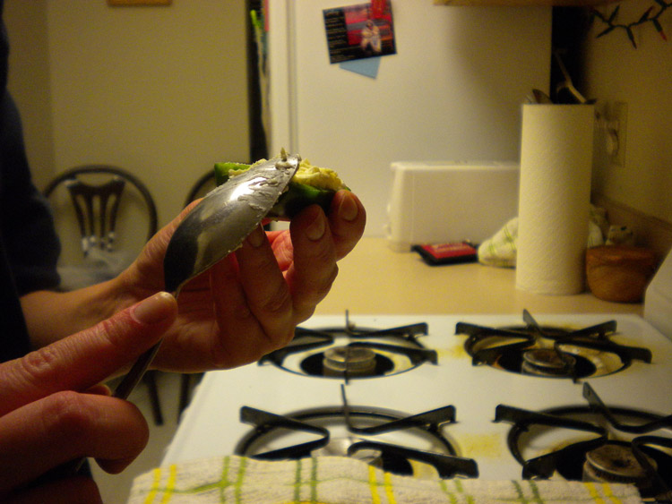 Stuffing jalapenos with cheese mixture
