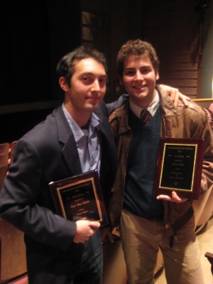 First prize and $2000 at the festival went to Dimitri Kouri (COM’11) and Zack McGeehan (COM’11) for their 8-minute-long narrative documentary about lobster fisherman from Winthrop, “Salty Dogs.”