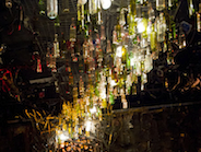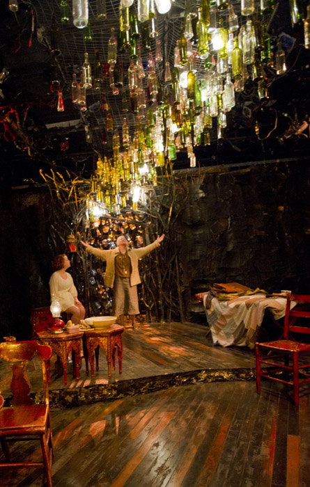 In accord, the setting added to the atmosphere of the play, giving a fuller sense of place. When you enter the theatre, a series of glass bottles and lights hang above the stage, for a small lightshow that comes up late in the play.