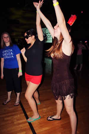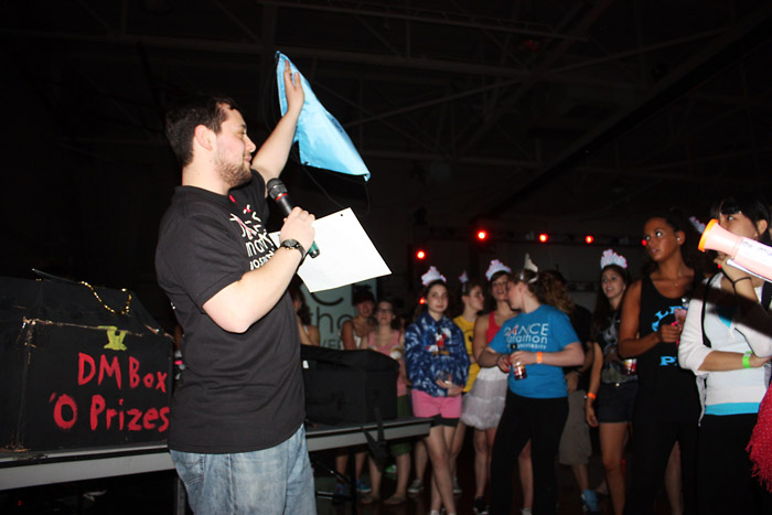 Dance Marathon involves 18 hours of dancing, which this year took place from 3 p.m. on Saturday to 9 a.m. on Sunday. To keep participants interested (and awake), the event arranges theme hours, guest speakers and performances, and “Moralers,” who take four to six hour shifts to cheer the dancers on. This year, there were about 140 dancers, many of whom signed up in groups or as part of an organization.