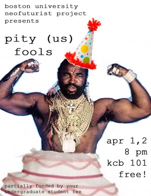 Last Friday and Saturday, the Boston University Neofuturist Project held its show “Pity (Us) Fools.”