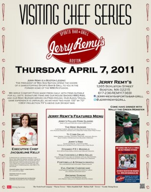 On Thursday, BU Dining Services hosted their latest Visiting Chef Series night featuring Jerry Remy’s Sports Bar & Grill. The event spanned dining halls campus-wide and showcased some of Jerry Remy’s best dishes: Jerry’s Pulled Pork Sliders, The Remy Burger and the Evil Empire Cheesecake, among many more.