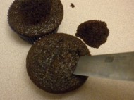 1. Use a small knife to cut out the centers of the cupcakes. Discard (aka EAT) the centers.