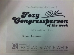 One Comment on “Foxy Congressperson of the Week: Michele Bachmann”