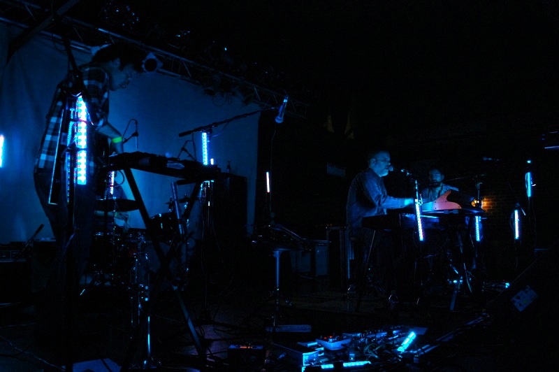 Movus opened and, unfortunately, did not do a great job. For most of their set, Movus sounded like an Explosions in the Sky cover-band, slowly building walls of sound occasionally interrupted by brooding guitar chords. There’s only so many moody guitar solos a guy can take. Their best moments were when all three guitarists brought their instruments together in chorus, but these moments were short-lived. Overall, Movus sounded like the watery vanilla ice cream served by the Warren Towers Dining Hall.