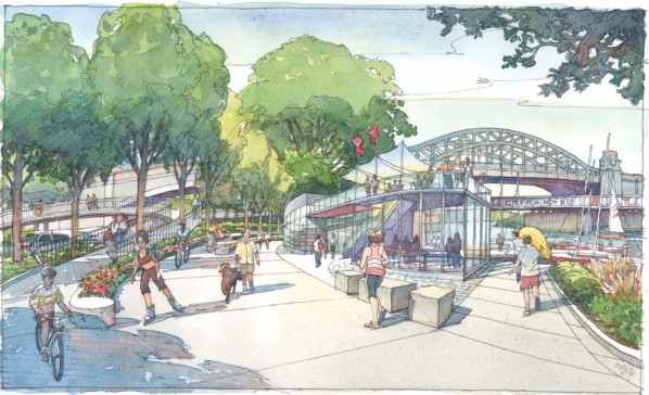 The restoration is ambitious enough, but the association is also promoting massive improvements. Sports complexes, landscaped gardens, public art, a Ferris wheel; their imaginations have not yet yielded to reality. Throughout the presentation, their improvements were realized in rich, watercolor paintings by architectural perspectivist Frank Costantino. Sun soaked lawns and happy Bostonians, either strolling or pushing strollers, fill the picturesque, fantasy Esplanade. The well-landscaped gardens and clean, clear water of the Charles River create a sense of heightened reality; the paintings are a reflection of the attitude of the Esplanade Association to their project. Sylvia Salas, executive director of the nonprofit group, noted in her opening remarks that, “the report is not a plan or even a proposal. It’s a vision for what the park could be.” The Esplanade 2020 report is meant, instead, to reflect the appearance of the Esplanade in an ideal world, where funding and construction are not serious obstacles.