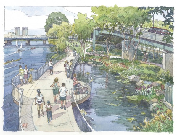 I know 2020 sounds like the distant future—but to anyone who plans to stick around BU for graduate school these changes could be realized by the time a master’s dissertation is submitted for review. The Esplanade Association’s vision is ambitious—especially so given their self-imposed eight year deadline. But it’s not an impossible achievement. Political pressure from the greater community could easily push this project through the bureaucracy of Beacon Hill and Government Center. Localized pressure upon Boston University from students could quickly remake the BU Beach into the beautiful, restful place depicted in these watercolor paintings. The effort may be incredible, but the reward will be worth it.