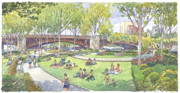 Make the park beautiful, sustainable, and maintainable; rescue key gathering spaces which have deteriorated with time; return Storrow Drive to a true parkway; redevelop the Charles River Dam and the Museum of Science complex; reclaim parkland by rebuilding Storrow Drive and destroying the Bowker Overpass; introduce a “fast lane” to separate walkers and bicyclists; build beautiful, grand entrances to the park; make the park a major arts venue; develop a unified visual identity; and actually get the park the funding and care it needs.