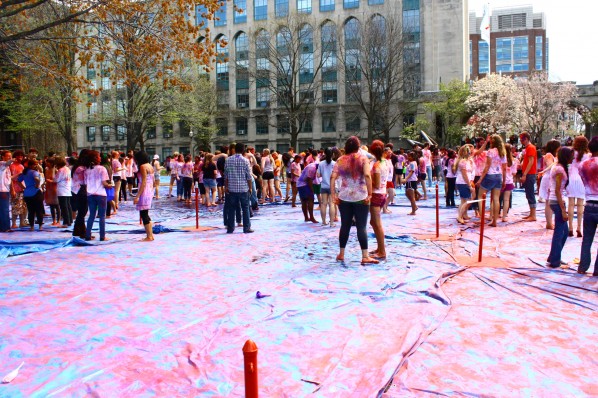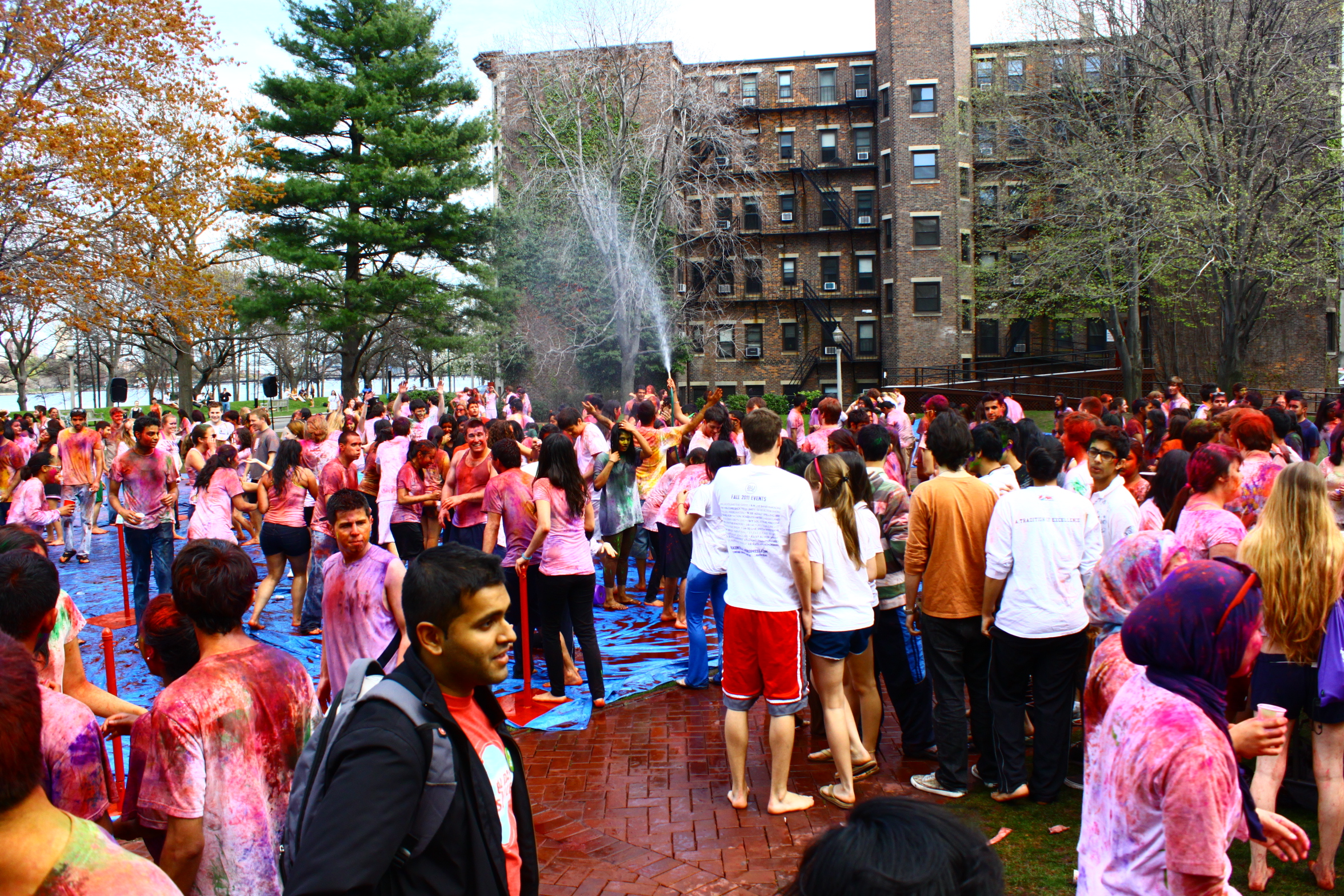 Springtime on campus brings flowers, (relatively) warm days, and tour groups. Unbeknownst to the prospective class of 2016, the afternoon of the April 14 was no ordinary one for the normally relatively composed student body of BU. The first sign might have been the people covered from head to toe in colored powder walking down Comm Ave. At BU Beach, there was a gathering of students throwing colored powder on each other while dancing to music in another language.