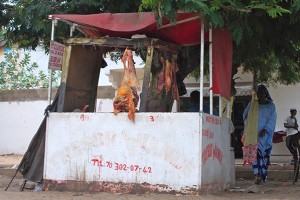 This past week was “Fall Break” for myself and the other students in my study abroad program in Dakar, Senegal. A group of us travelled from the capital city to the southeast region, where things are more rural and less developed. In the photos below, the lack of modernity is readily visible. I chose some places to photograph that to us Westerners are commonplace and crucial in our everyday lives: the butcher, a church, a gas station, someone’s home, a hospital, the post office, and of course, a form of “take out” (bringing dinner home for the family). These places and things are also important in the lives of rural Senegalese villagers (they’re human too!), but it is amazing to observe them and their constructions comparatively with the ones we frequent in the States. Enjoy!