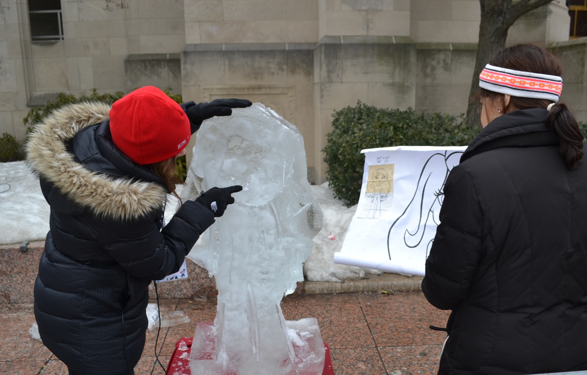 This past Saturday, teams of BU students and alumni gathered in Marsh Plaza for some friendly winter competition: an ice-sculpting contest. Eight chiseled works of frozen art were created over the span of four hours. This competition was organized by the Boston University Alumni Association as one of many Winterfest weekend activities.