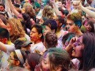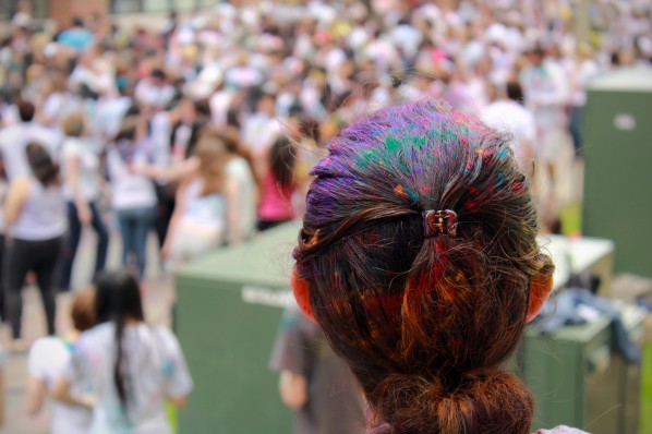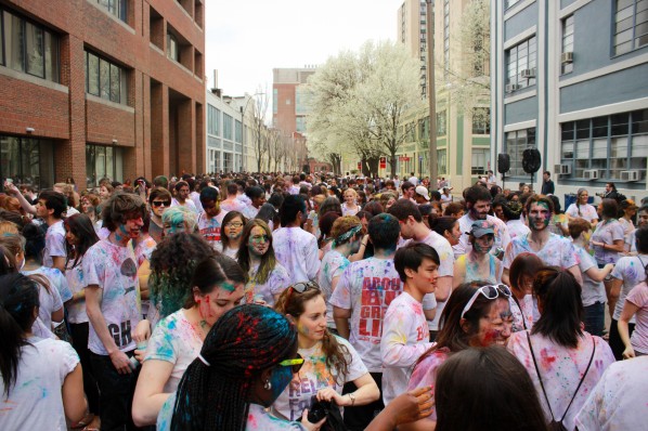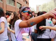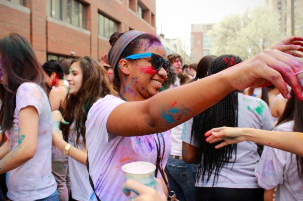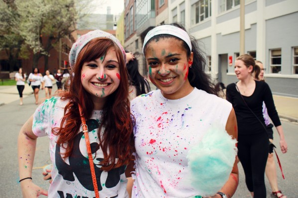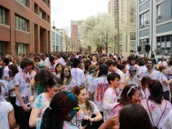 On Saturday afternoon, Boston University students ran to the new pedestrian mall behind Warren Towers to celebrate Holi. The festival is a traditional Hindu celebration of the renewal of spring and farewell to winter. It has become popular within many cultures but always involves throwing colored, and sometimes scented, powders at participants. On occasion, the event may be held around a bonfire and incorporate dancing. This year, students celebrated by flinging colorful powder at each other and dancing to both popular American and Indian music. The celebration lasted roughly two hours and left the streets of the pedestrian mall coated in colors but also in joy.