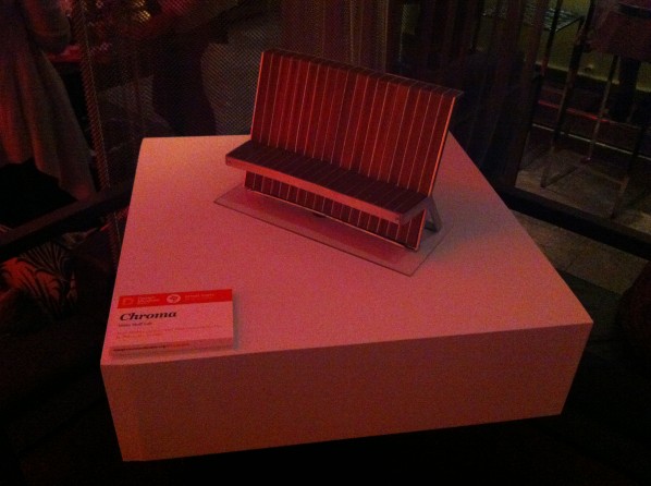 Throughout the W’s bar and lounge, Design Museum Boston displayed four models of benches that are currently installed in Boston’s Fort Point Channel. Ranging from ultra modern, sleek designs to rough, rustic wood, these benches are a far cry from their graffitied brethren on Commonwealth Avenue. My personal favorite, Strataform, curves up from the ground until it hangs over the grass as though it has just sprouted from the earth itself.