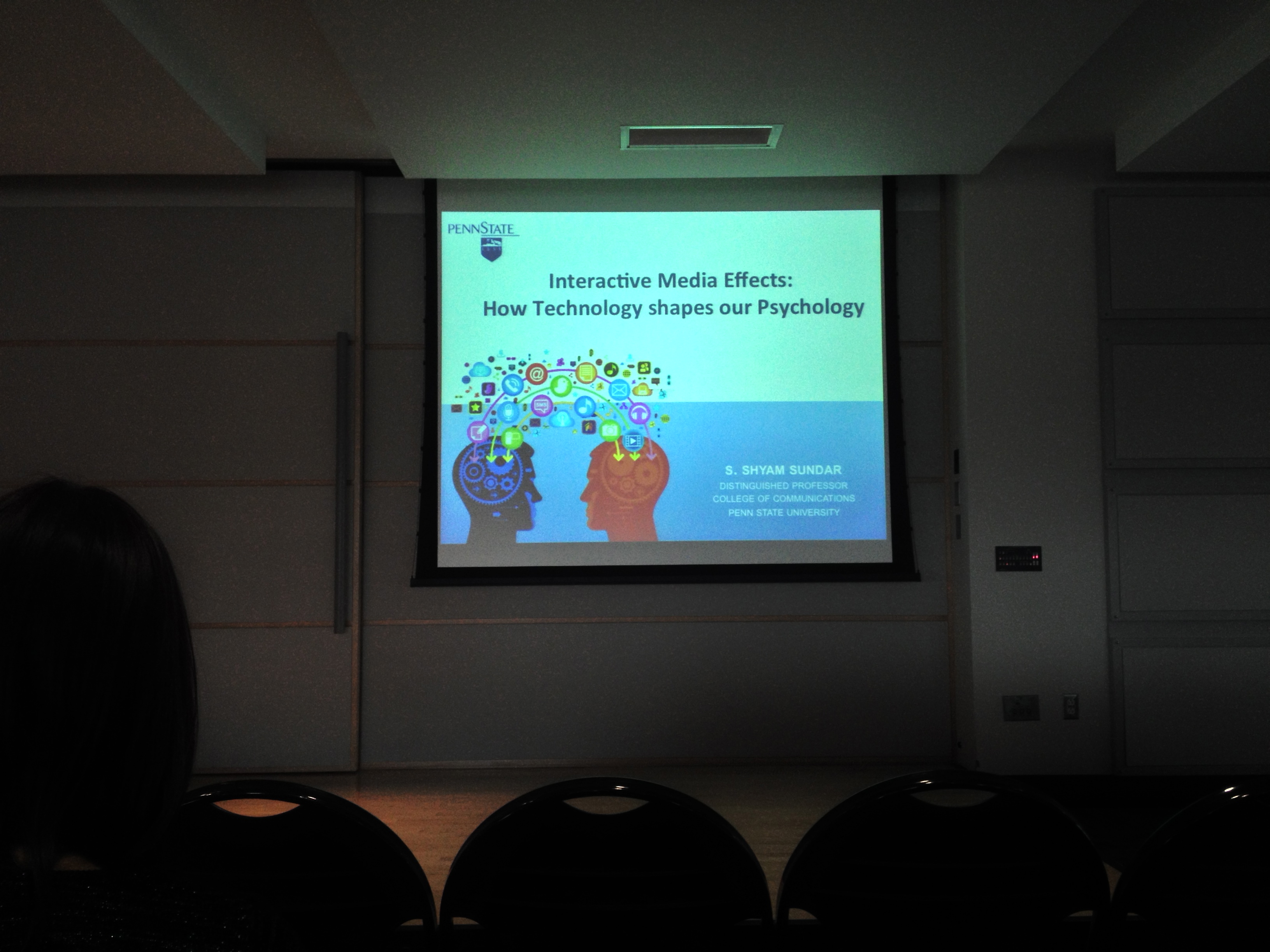 An energetic and clear speaker, Sundar posed thought provoking questions to the audience, who represented a conglomeration of COM students, psychology majors, and all those with an interest in media. Above all else, the professor made it abundantly clear that he had no hidden agenda. He wasn’t there to pass judgement on whether or not all of this media use is beneficial or harmful to society, but rather to simply present an objective view of the technology.