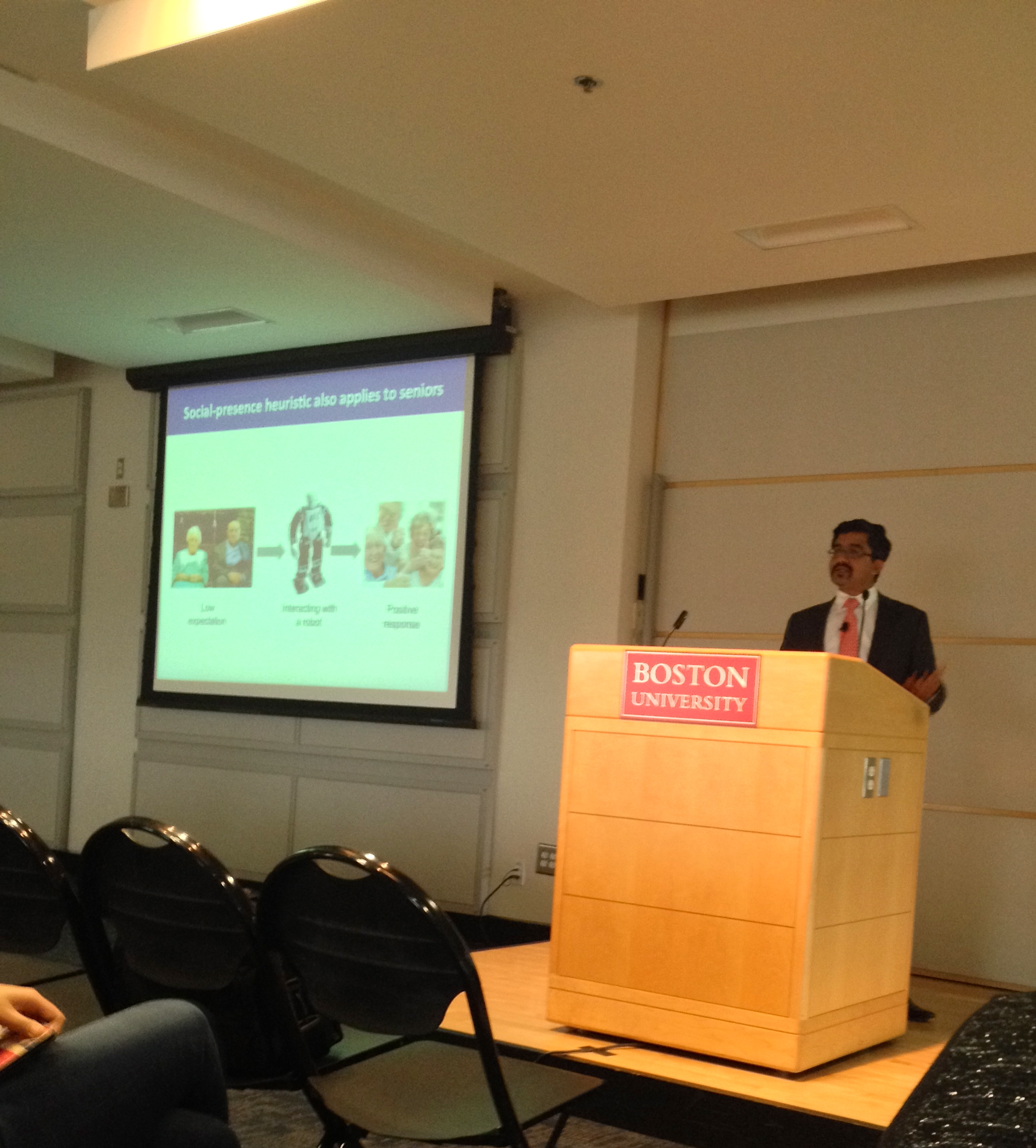 On Thursday afternoon, the Dr. Melvin Defleur Distinguished Lecture Series continued with a presentation titled “Interactive Media Effects on Psychology” by Dr. Shyam Sundar, a distinguished professor/co-director of the media research laboratory at Penn State University.