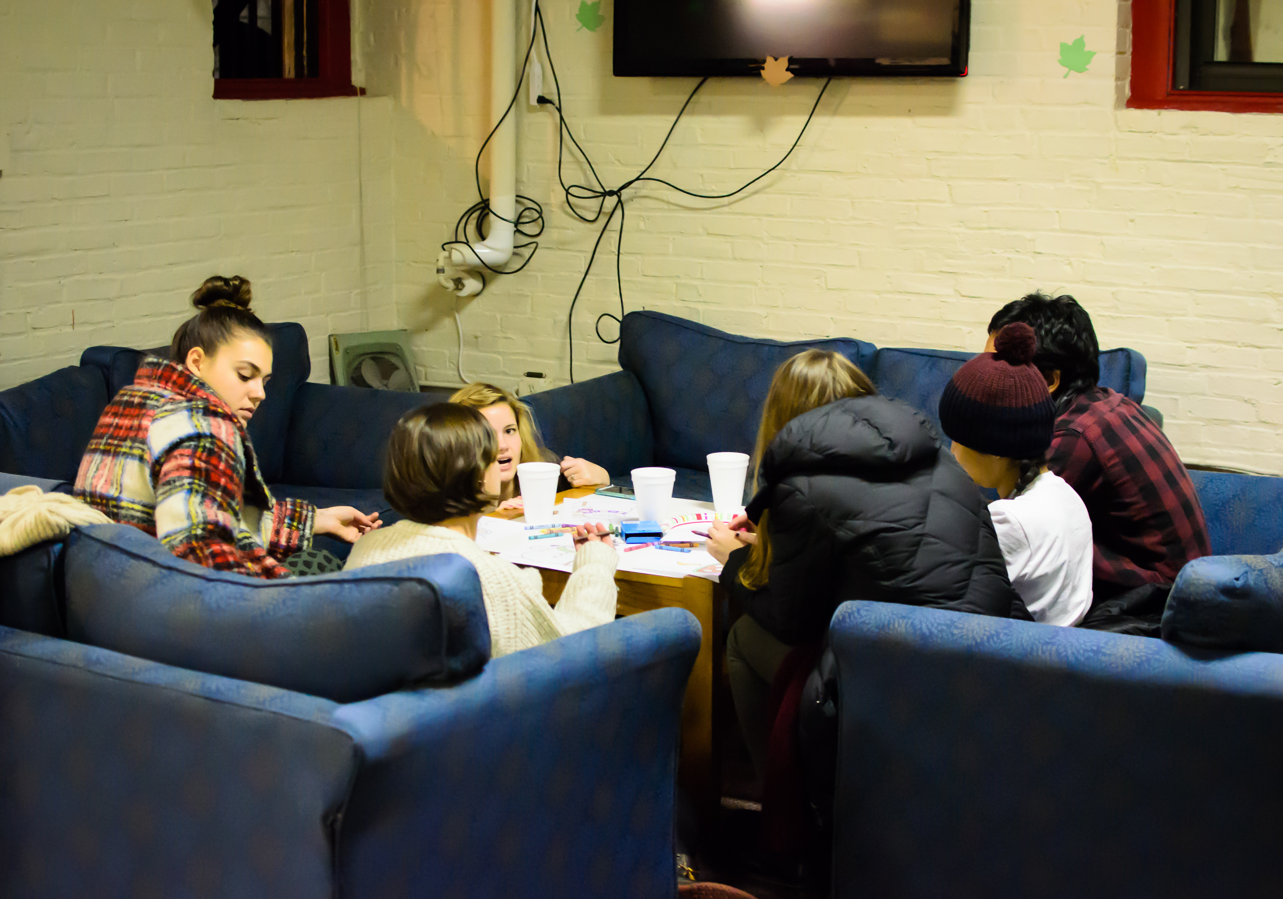 Downstairs in the lounge, arts and crafts and, most importantly, cookies are set up. | Photo by Yu-Ching Chang