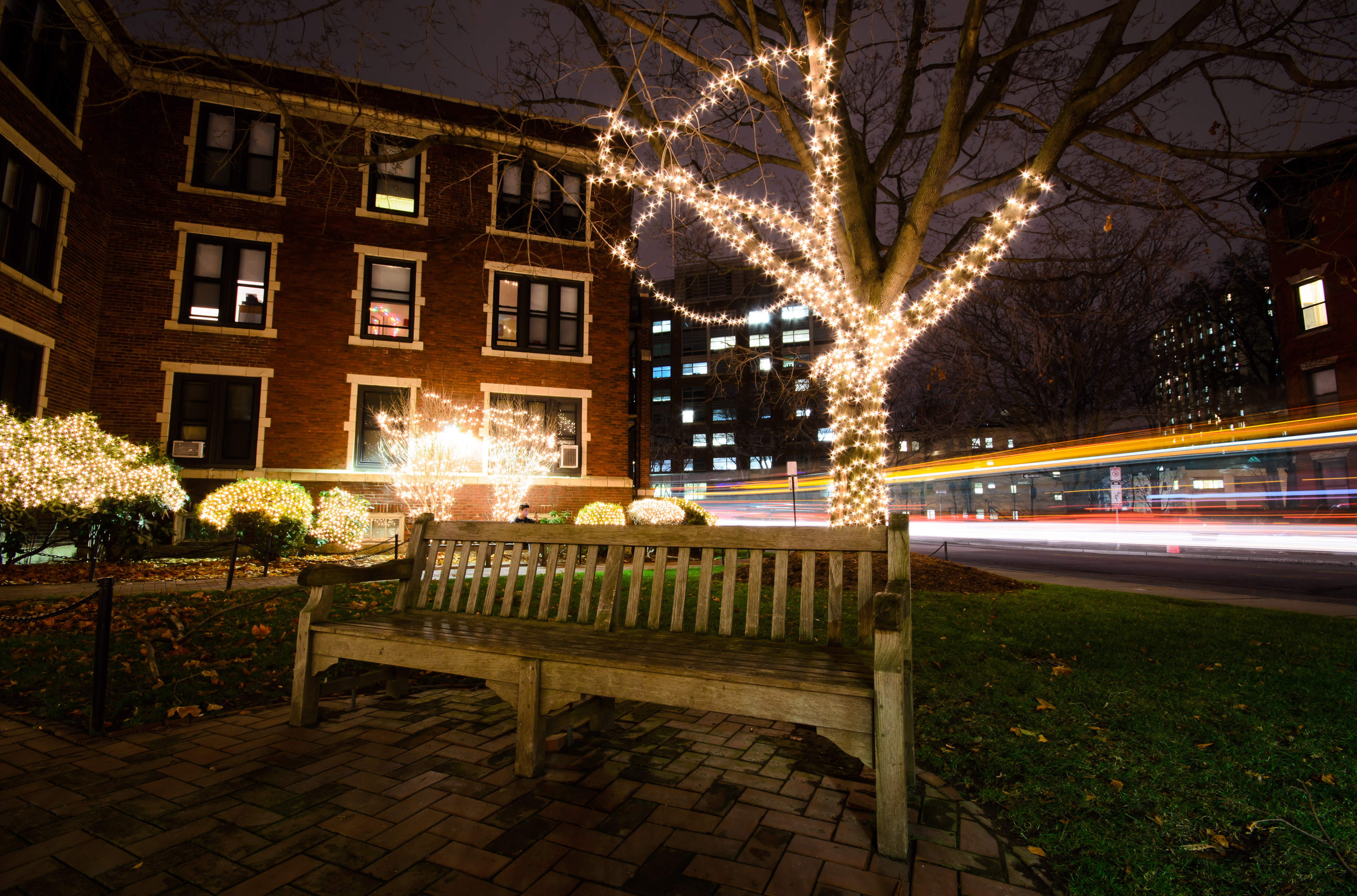 It’s that time of the year again! Specifically, the most wonderful time of the year, filled with marshmallows for toasting and much mistltoeing and … holiday lighting? Apparently yes, at least that was the case for South Campus on Friday night. At 5:30 PM, the courtyard of 520 Park Street lit up with holiday lights draped on trees and bushes, with crafts and Insomnia cookies up for grabs downstairs in the lounge.