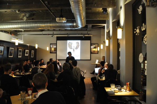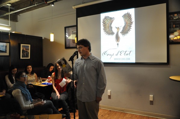 Boston University’s newest literary publication Coup D’Etat recently held an evening launch party at Trident Booksellers. A journal title like that had guests wondering, what exactly is this journal attempting to overthrow? The event was abuzz with eager students hoping to find the answer by listening to readings by authors of pieces published in the journal. Attendants of the event had the opportunity to order food from the cafe in the two story bookstore while the launch took place upstairs. The ambiance created by the dimly lit lamps added to the cool mood of the party, setting the most recent addition to Boston University student publications off to a successful start and encouraging what what is expected to be an impressive initial following.